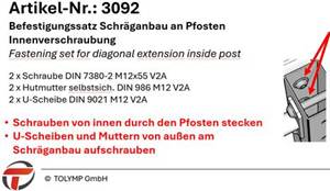 Befestigungssatz Schräganbau an Pfosten per Durchgangsverschraubung |