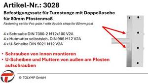 Befestigungssatz für Pfosten 80×80 mm Turnstange Art.Nr. 1093 |