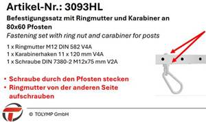 Befestigungssatz mit Ringmutter und Karabiner an 80×60 Pfosten |