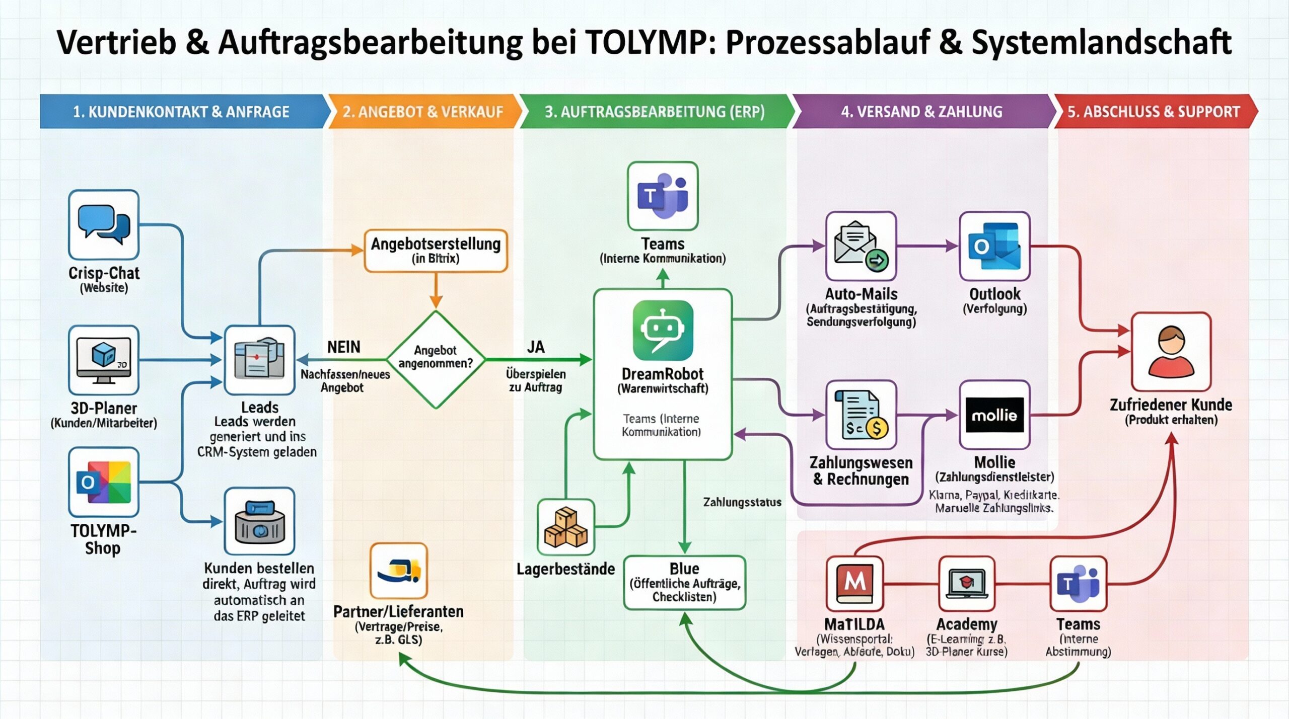 Schön, dass du da bist. In dieser Übersicht stellen wir dir kurz unsere wichtigsten Systeme und Abläufe vor, damit du schnell weißt, wo du welche Informationen findest und wie die Tools zusammenhängen.