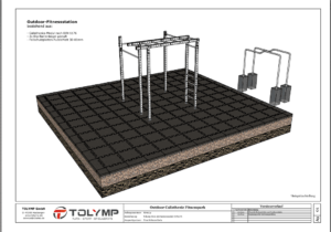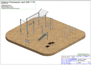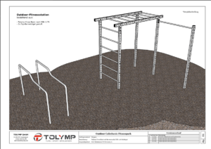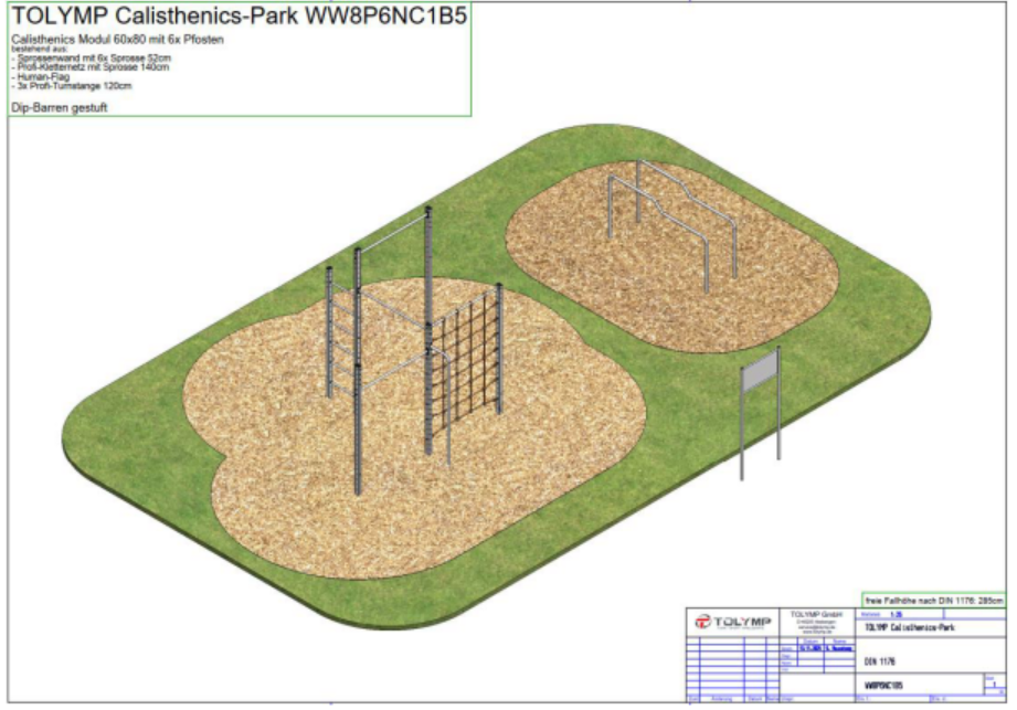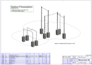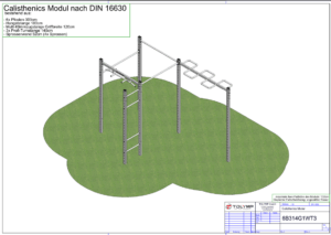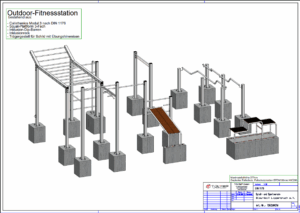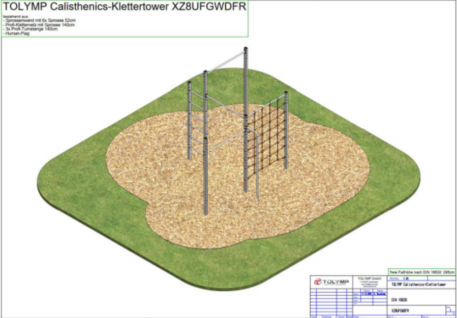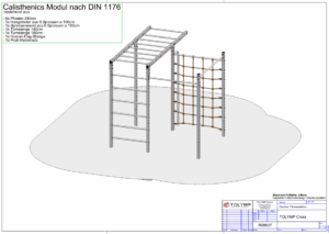 WICHTIG: Die vom TÜV freigegebene Zeichnungsprüfung gilt ausschließlich für identische Projekte. Änderungen sind nur in sehr geringem Umfang zulässig (z. B. Feuerwehrstange oder Battle-Rope-Halterung).